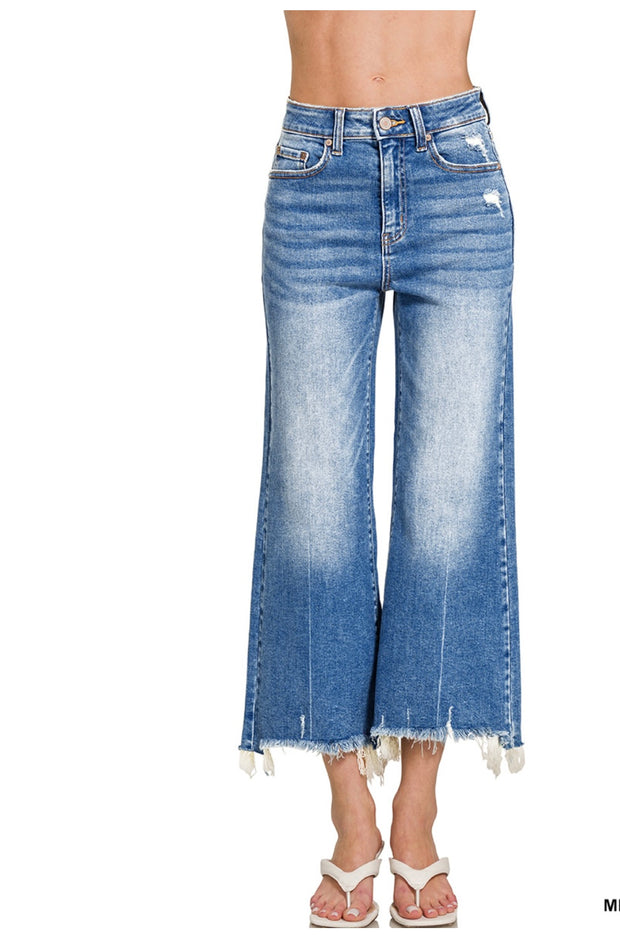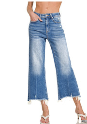 MID-RISE STRAIGHT RAW HEM DENIM PANTS