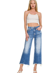 summer staple right here! On trend with straight leg bottoms and raw hems! Dress them up or down, fair amount of stretch, not baggy!